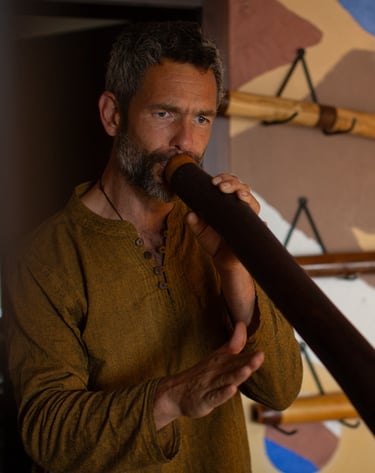 Avec Stéphane Olry-Hans, nous faisons résonner une palette d’instruments : didgeridoo, guimbarde, carillon, RAV, handpan, Kigonki, bols chantants, violoncelle, bâton de pluie… Chaque vibration tisse un univers sonore enveloppant, où le corps et l’esprit peuvent se relâcher en profondeur.