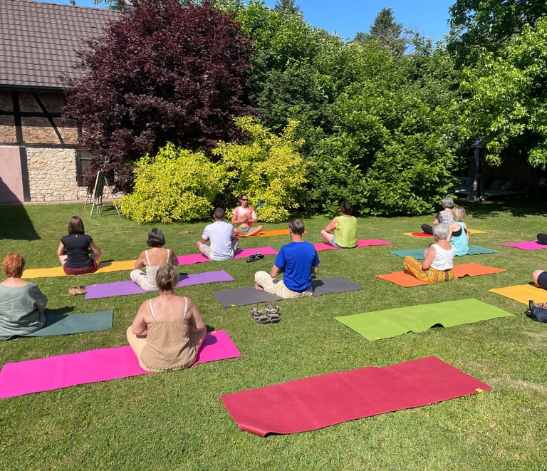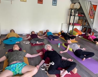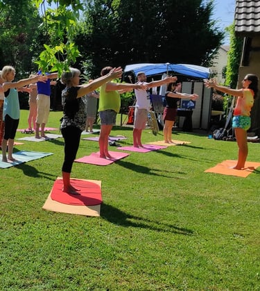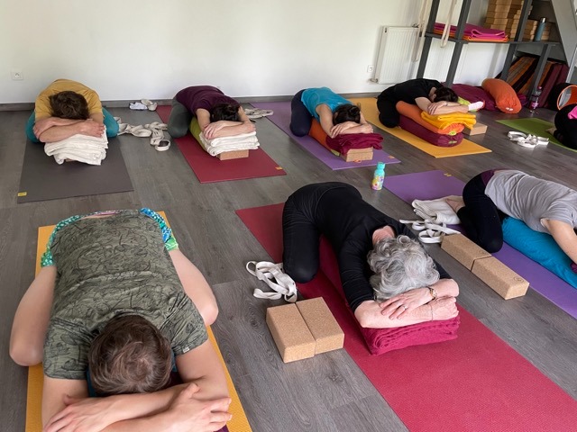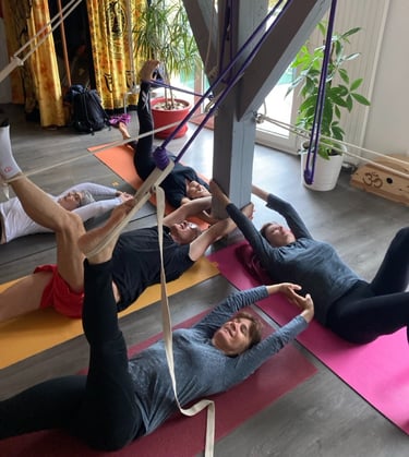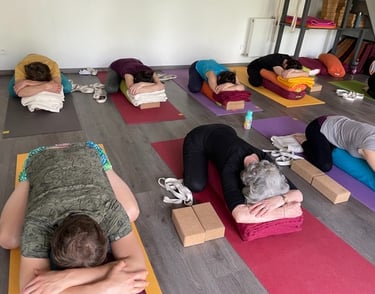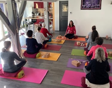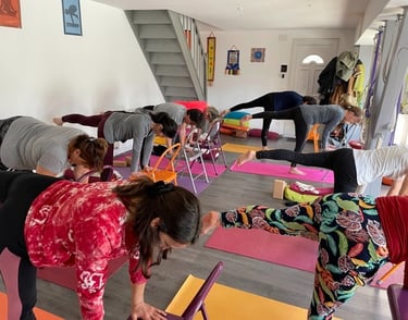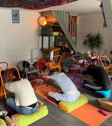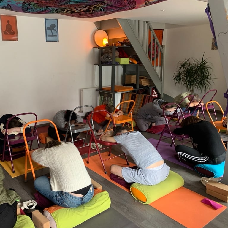 Les séances que je propose sont une série d'asanas conçue pour permettre aux participants de développer l'ancrage, la stabilité, l'aisance, la fluidité et la sérénité à travers chaque posture. Ces cours sont le miroir de mon évolution personnelle dans la pratique du yoga, se renouvelant et s'adaptant constamment. Tantôt dynamiques, tantôt restauratifs, ils peuvent être accompagnés de musique ou non, selon l'atmosphère du moment. De plus, j'intègre occasionnellement des exercices de Pranayama pour enrichir notre exploration des différentes catégories de postures : debout, assises, torsions, allongées, inversées, équilibres, flexions arrière, variétés de salutations au soleil et phases de relaxation. Chaque cours est pensé comme un flux cohérent qui culmine dans un moment de relaxation profonde, parfois bercé par la musique, une guidance verbale, ou les sons apaisants du kalimba, du RAV, du kigonki, des koshi et des bols tibétain.