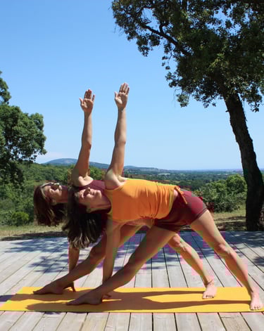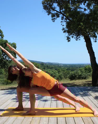 En 2019, j'ai fait une rencontre marquante avec le Yoga Iyengar, une révélation pour moi. Sous la tutelle de ma professeure, Sandrine Rousseau, j'ai été profondément touchée par sa manière d'enseigner et par les principes des asanas, qui se concentrent sur l'alignement du corps dans l'espace. Depuis ce jour, ma pratique du yoga n'a jamais cessé, car j'ai ressenti ses bienfaits à la fois sur le plan physique et mental. Au bout d'un an de pratique journalière, j'ai suivi la formation pendant deux ans proposée par Sandrine afin de devenir enseignante de yoga à mon tour.